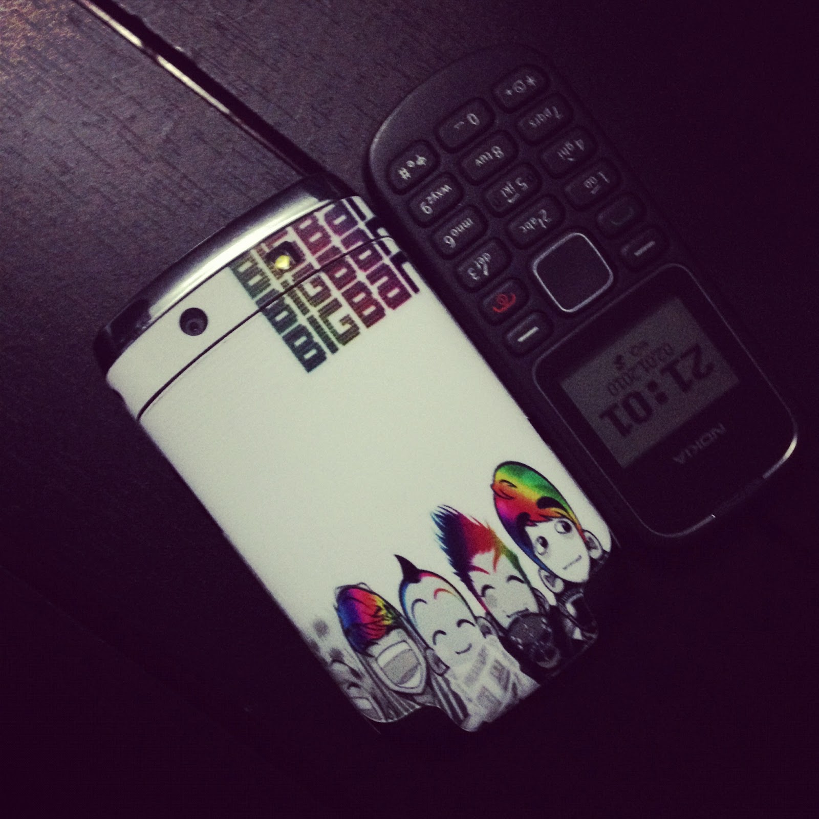 My Garskin (BIGBANG! Arggg..) and my favorite phone Nokia 1280 . lol